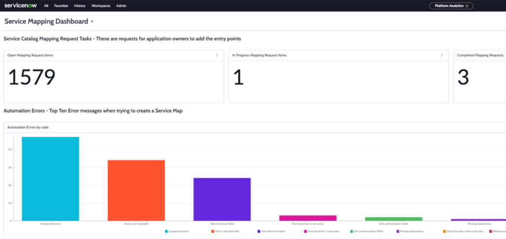 Monitor, track, and optimize your Service Mapping efforts with real-time visibility into automation errors, operational status, and request progress.